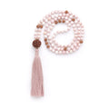 Accelerate your spiritual awakening by meditating with our pink opal Higher Realms 108 bead mala. Pink opal is a gemstone with gentle, healing energy thought to enhance intuition, foster feelings of love, and grant spiritual discernment and clarity.