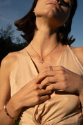 This necklace is encrusted with shimmering white topaz gemstones - a high vibrational gemstone believed to purify the aura and surround it in white light protection.