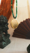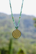 Joy and Prosperity Flower of Life Necklace, Green Aventurine, Spinel, Chrysoprase, 18K Gold