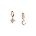 Moon & Star Huggie Hoop Earrings with Drop Charms, White Rhodium