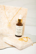 Our New Moon Anointing Oil is blended with reverence under the mystical darkness of the New Moon, this inspiring essence contains organic sweet almond oil infused with sacred, healing herbs, merged with our invigorating blend of pure essential oils and moonstone gem elixir to aid mental clarity, encourage ideas, increase focus and motivation, and connect us to our inner presence that the fresh energy and renewed beginnings of the New Moon brings.