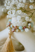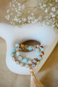 Blue Snake Skin Jasper Transformation and Growth Wrist Mala Tassel Bracelet