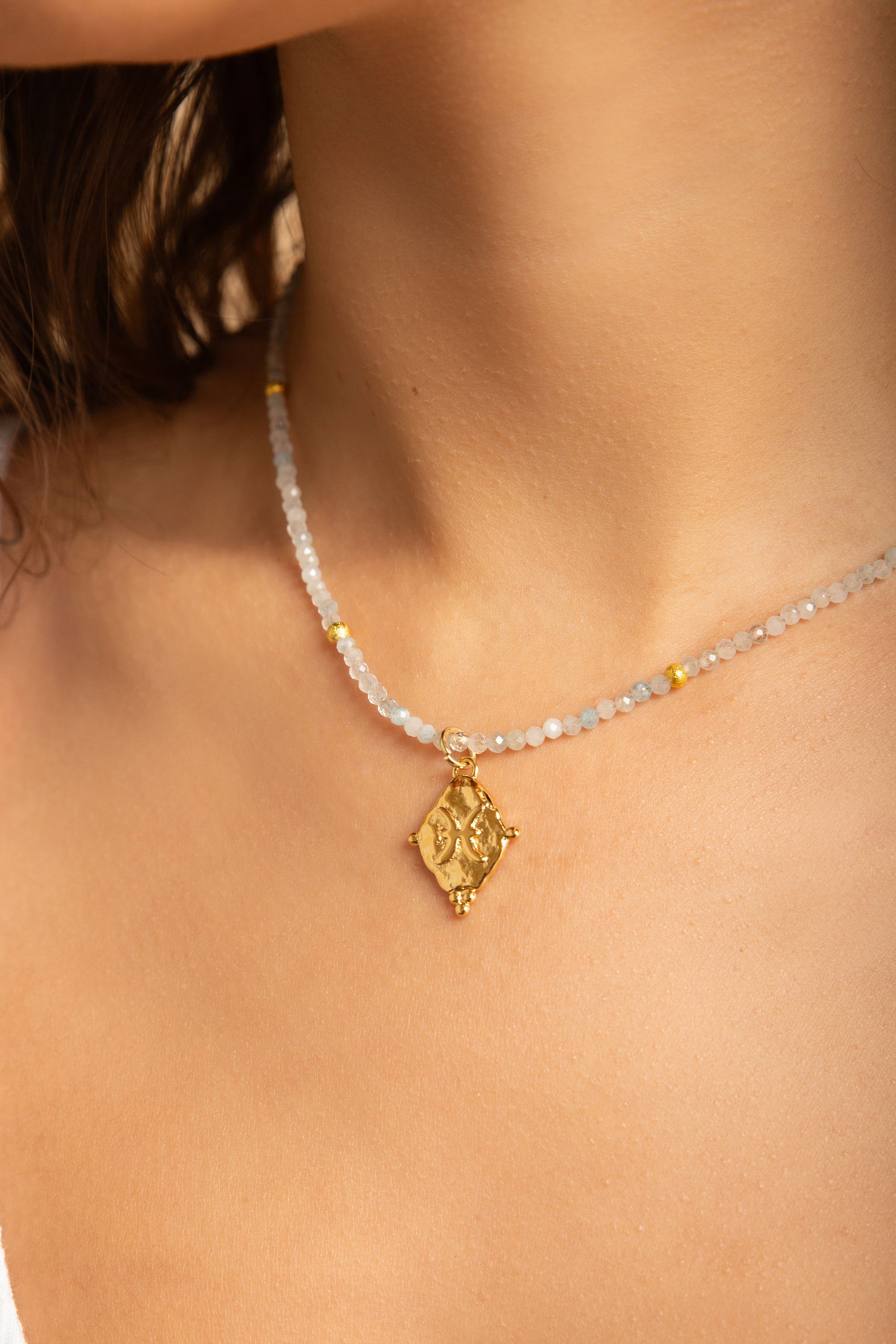 At its center rests a vintage-style Pisces pendant, symbolizing empathy, imagination, and emotional depth — a reminder that sensitivity is a sacred strength and compassion a form of wisdom.