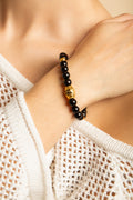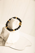 This bracelet is meticulously handcrafted in our California studio using powerful, smooth round black onyx 8mm beads. Onyx is thought to impart strength to its wearer during difficult times. It is protective, grounding, nurturing, qualities are believed to help with decision making, boosting confidence, and navigating change.