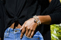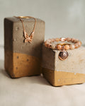 Activate your Sacral Chakra with this Sunstone stretch bracelet that features an engraved 18k gold plated brass Sacral chakra charm, Seven Saints signature bead, and gold spacers.