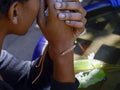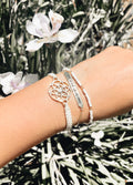 This bracelet is engraved with the powerful Sanskrit mantra: "Lokah Samastah Sukhino Bhavantu".