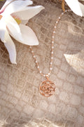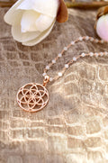 Seed of Life Feminine Power Amulet, White Chalcedony Chain, Rose Gold Plated