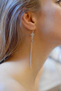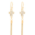 Elegant Cross Pave Tassel Earrings, 18K Gold Over Sterling Silver