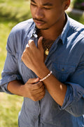 Bring the energy of spiritual protection, wisdom, and inner peace into your life with our Sri Yantra necklace paired with the beloved gemstone, Lapis Lazuli.