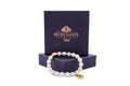 Activate your Throat Chakra with this faceted Amazonite stretch bracelet that features an engraved 18K gold plated brass Throat Chakra charm, and Seven Saints Jewelry signature bead. Available in round or faceted stone cuts.